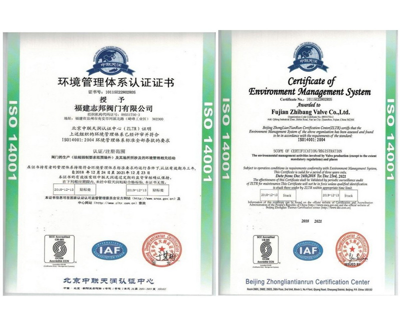 環(huán)境管理體系認證證書