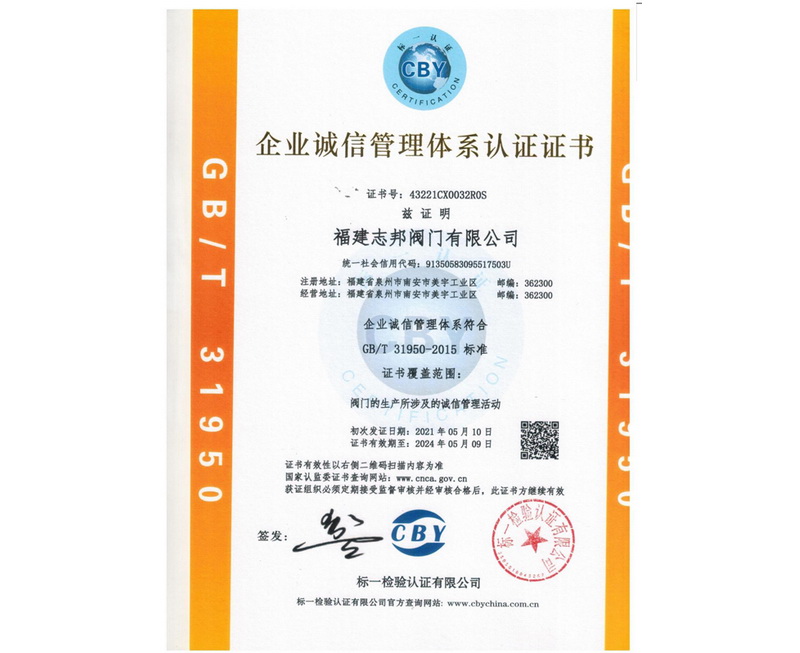 企業(yè)誠信管理體系認證證書