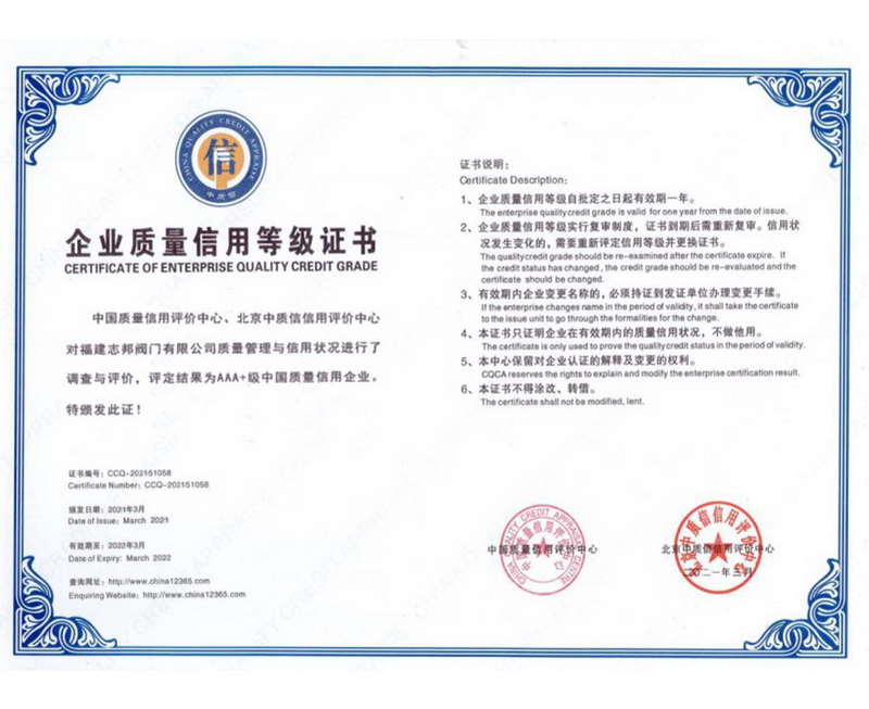企業(yè)質(zhì)量信用等級證書