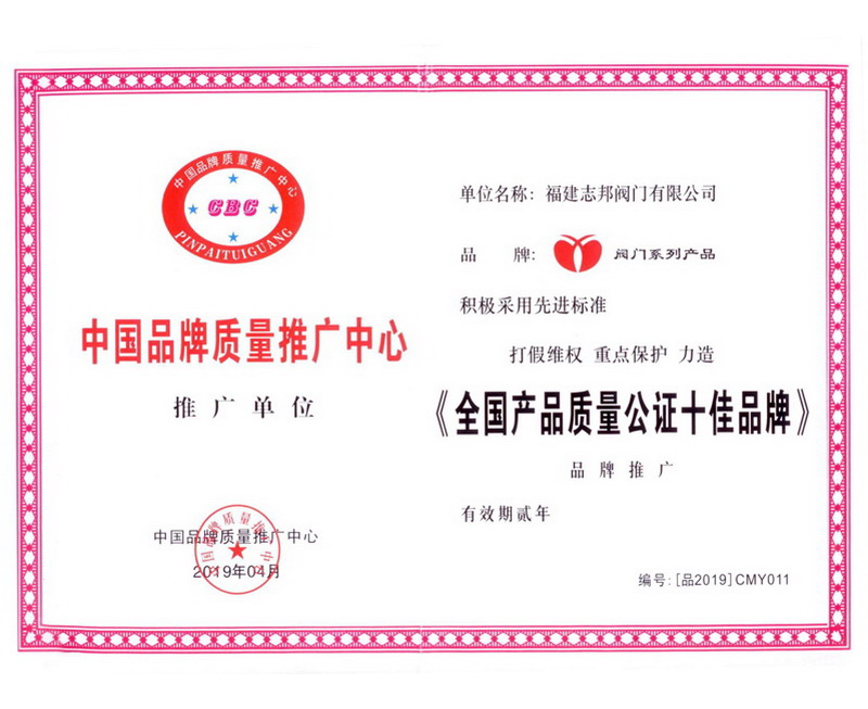 全國產(chǎn)品質(zhì)量公證十佳品牌