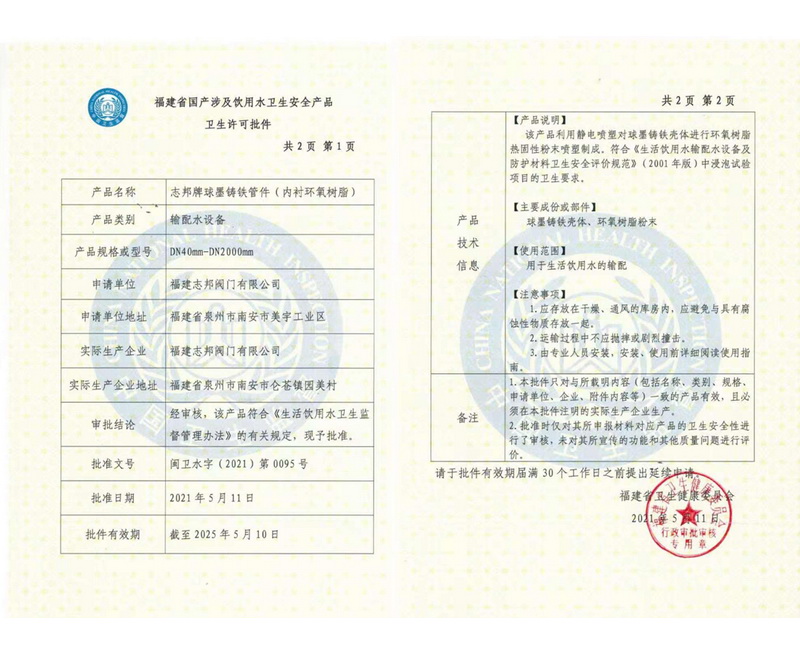 衛(wèi)生許可批件