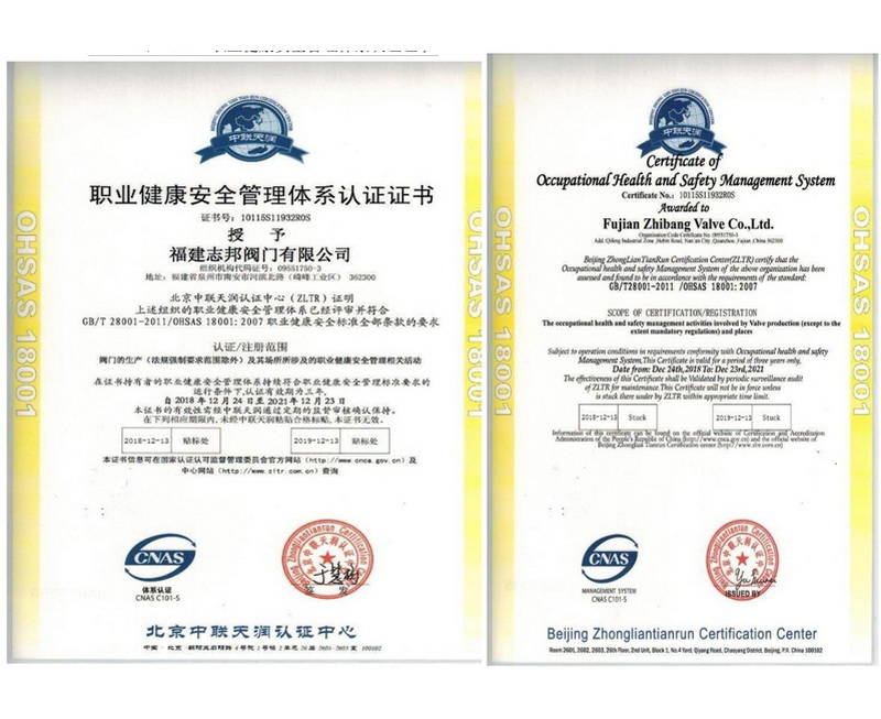 職業(yè)健康安全管理體系認證證書
